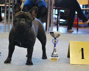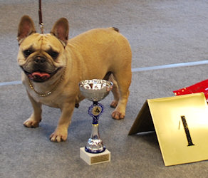 Champion Ibo-Frenchie vom Künigelberg (son of Mac Buffy v. Muppy's Place) Exc1, CAC, CACIB, BoB, Best of group !! and got awarded the title International Champion (owner Aviles/Fritthum)