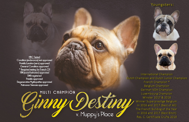 Great start in 2018: Participation in the Dog of the Year show and Winner of the Superprestige KBKFB Belgium 2017 Ginny is the first to win this title twice On 24-02-2018 Ginny becomes for the second time French Bulldog Bitch of the Year (double-double-strike for Super Ginny)