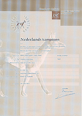 Best of Breed CAC-CACIB-show Groningen 1 U J.CAC-CAC-BOB (3xJ.CAC=DYC)