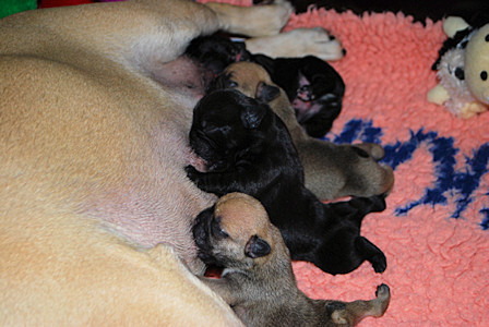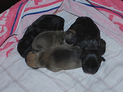 En Zoeteke, dat was al meteen bekend. Die blijft hier bij ons en mama Madonna Onderstaande foto's zijn van de pups met 7 weken, bijna ontvluchten ze het nest.
