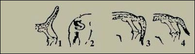 Voorsnuit: erg kort, breed, vertoont concentrisch symmetrische plooien.