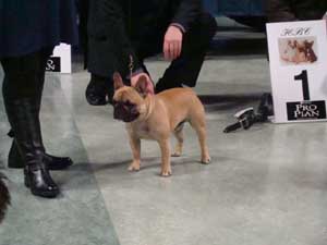 With 5 qualifications we went to the biggest Dogshow on earth: The Crufts show in Birmingham (.U.K.). For this show there were 121 registered entry's for the French Bulldog. The most wellknown breeders from England were present, and additional some nice Frenchies from abroad. Pink presented herself marvelously and became 3th in the highly competitive open class. De best of breed winner became 1th in the same class. Of course we are extremely proud of our Pinky.